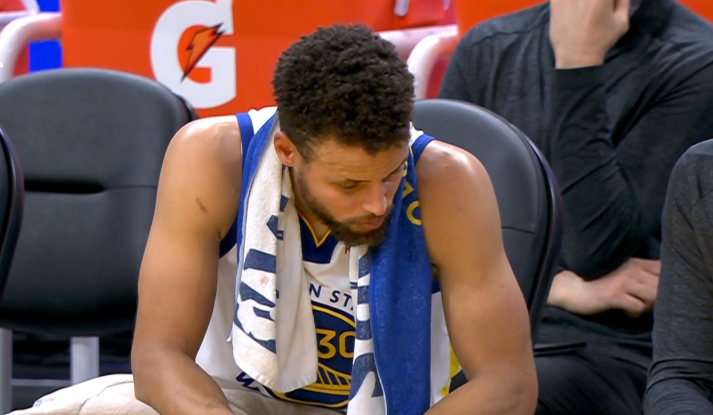 库里在此前对阵火箭的比赛中挫伤了尾椎骨,他已经因为这个伤休息了两场比赛。