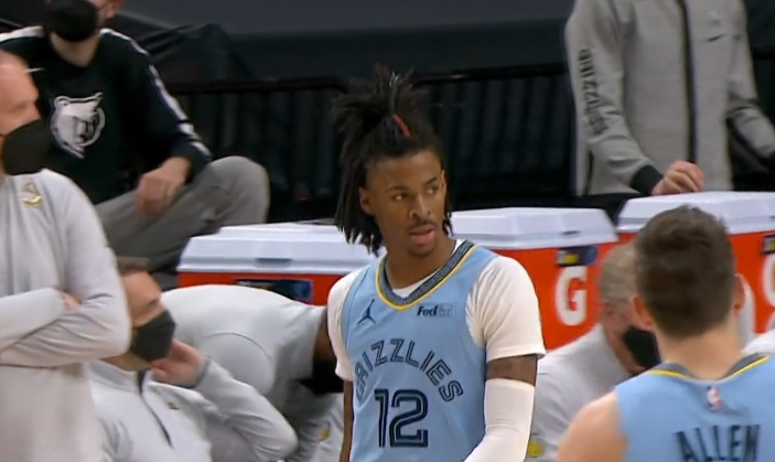 北京时间4月24日讯 NBA常规赛,灰熊130-128战胜开拓者,赛后莫兰特在场边接受了采访。