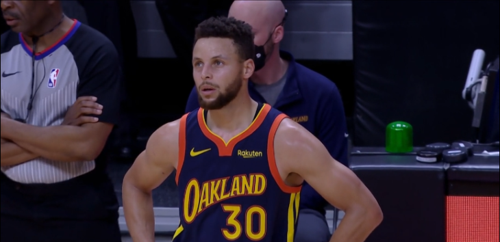 北京时间5月5日讯 勇士队今日客场背靠背挑战鹈鹕。首节比赛,库里命中一记三分。