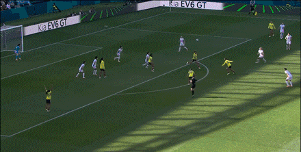 第28分钟,哥伦比亚进攻形成连续攻门,最终巴内加斯射门打在沈藇妍手上,主裁判判罚点球并出示黄牌。