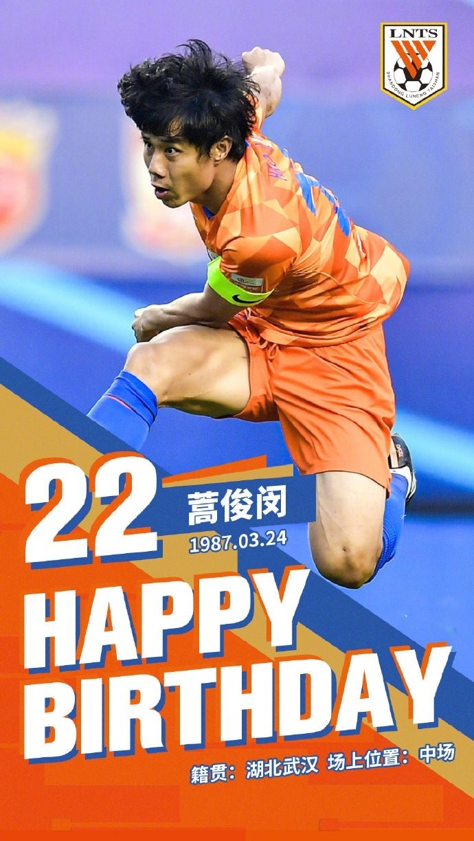 北京时间3月24日讯 今天是泰山队长蒿俊闵34岁的生日,泰山俱乐部官博发文向他送上了生日的祝福。